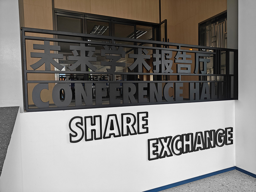 艺术长廊位于进入学校大堂的右侧,整体在保留原有空间上进行改造设计,合理规划七个版块内容,分别是:未来可漆、阅读角、融合艺术、展示区、师生同创、本真邮局、阶梯报告厅,通过以展示互动的方式进行呈现。