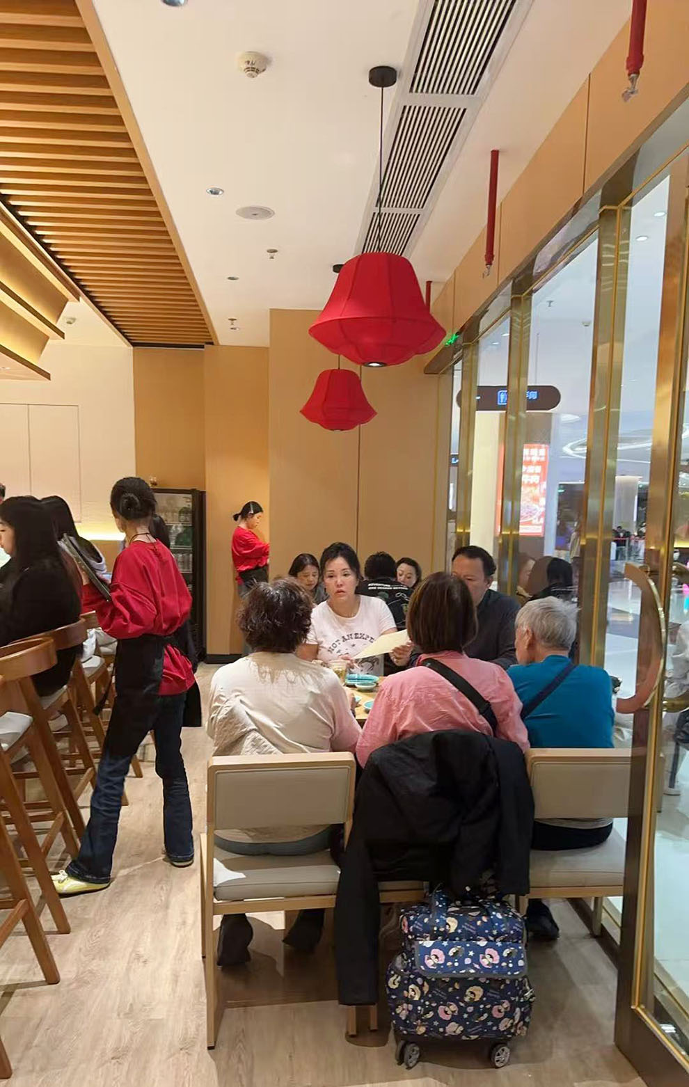 *店前等候。