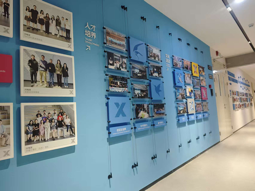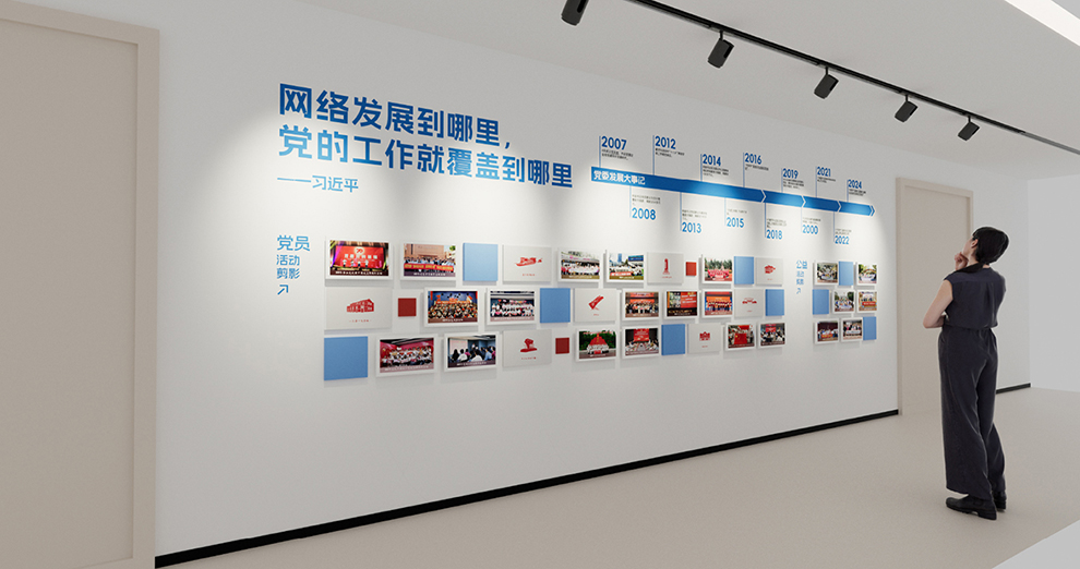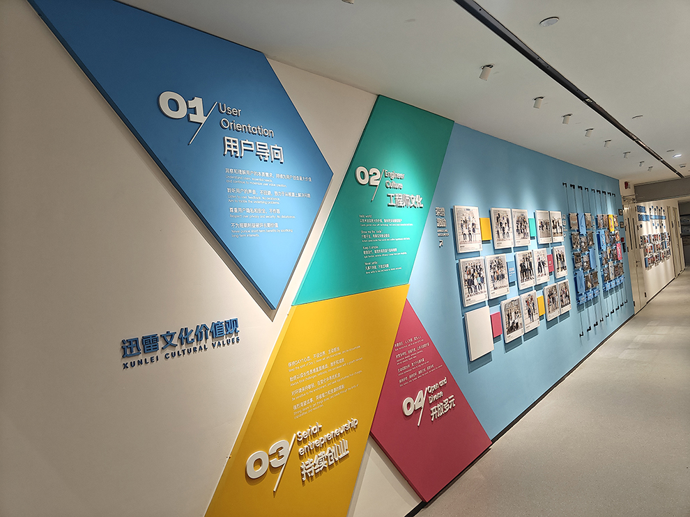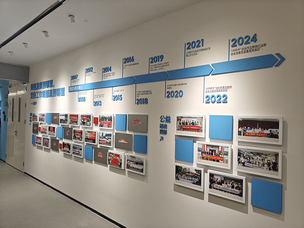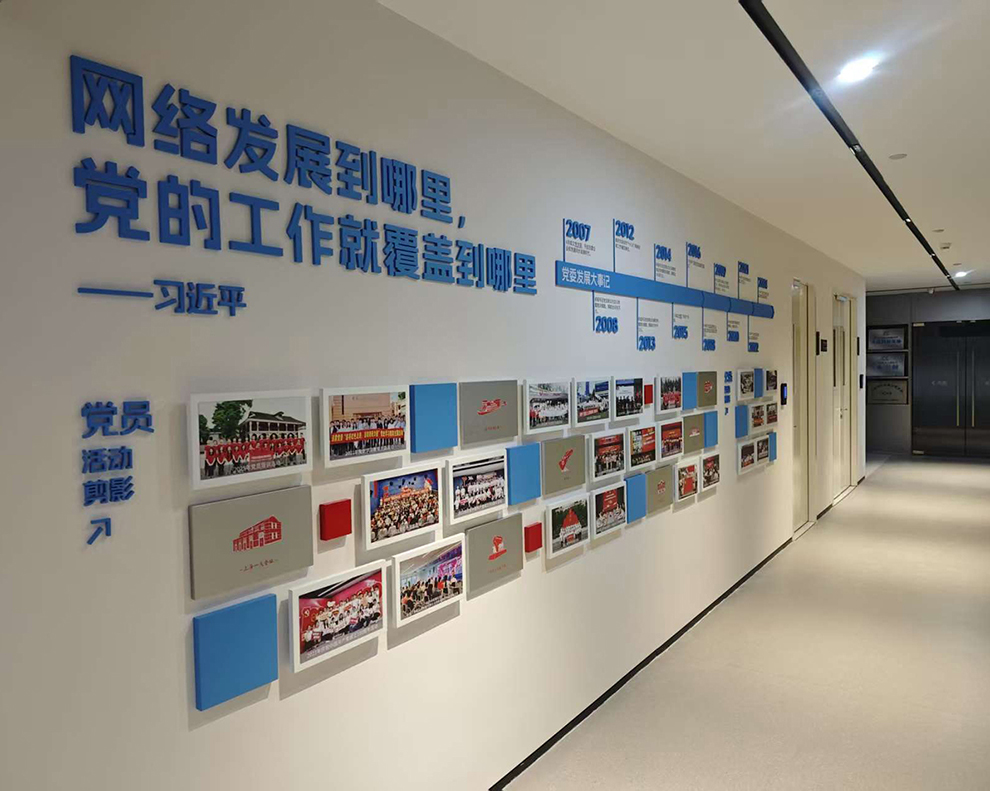 位于深圳迅雷大厦18楼(文化墙&党建墙),由客户内部自行设计,我方给予图纸深化与落地施工执行,深化设计及完工后实景如下。