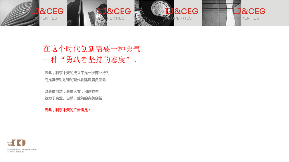 一直思索于地产置业的行业属性,我们该用一种怎么样的气质来表现这个全新品牌的形象;对于地产谈不上多么微观与宏观上的见解,从大众的身上我理解到为:”推动城市的现代化建设,与地球共荣共生“,如果把利京中天比作为一个建设者的支点,那么在地球上这个广茅无垠的大平台上,我们将大放异彩。