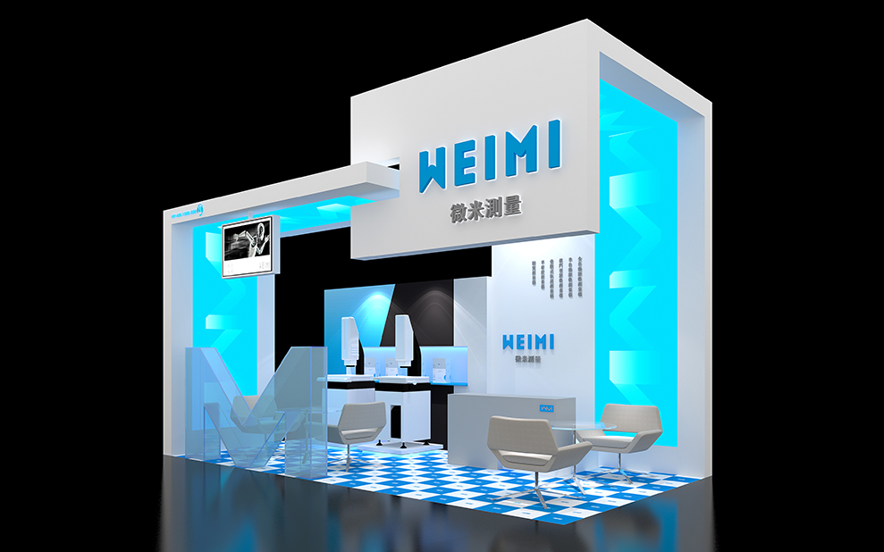 微米测量展厅,为客户提供参展时间相对久,以半月为基础而设计,展厅的设计,我们以行架搭建,中纤板烤漆为主,在空间中我们把品牌视觉形象置入其中,以大面积品牌图形灯膜营造视觉冲击力,空间上高低叠落。