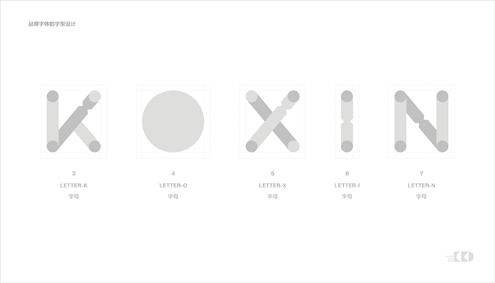 在标识的设计上,我们以「KOXIN」为核心,在「KXIN」上面,我们融入榫卯的结构元素,使之让品牌字体符号有趣、生动,符合品牌行业属性。