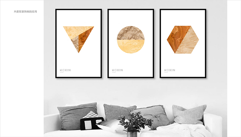我希望我们的产品不是工业品,不是像材料样板一样,客户拿到手后丢弃在角落,有用时则翻出来,我希望用几何方式,以木皮为画的画框,能成为我们在空间上的生活装饰,亦然能够成为我们店面的装饰画。我不希望我们的产品是生硬的,应该是能与人沟通的。