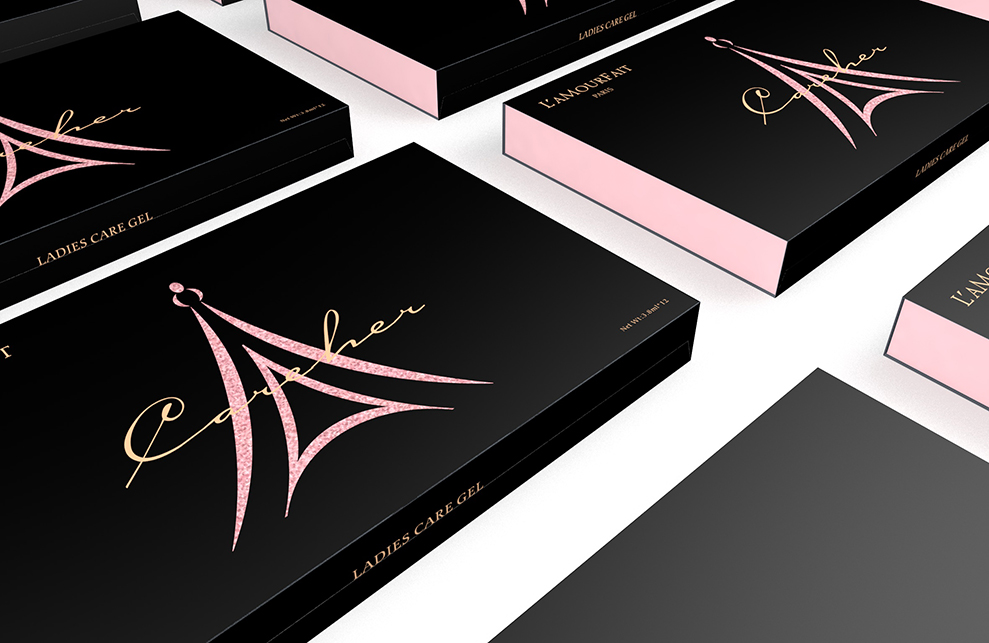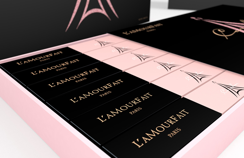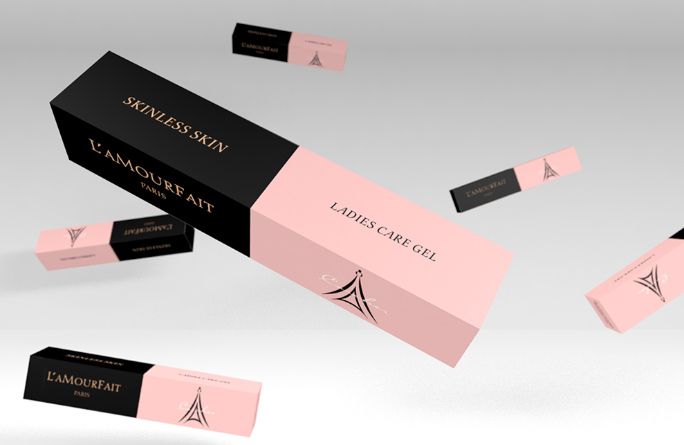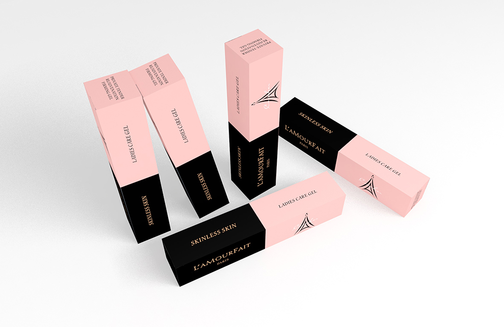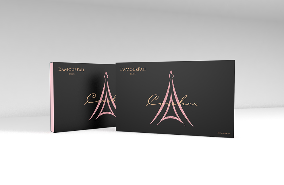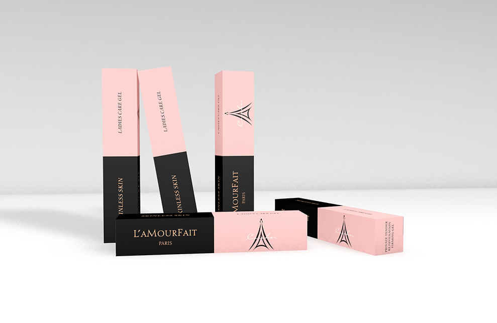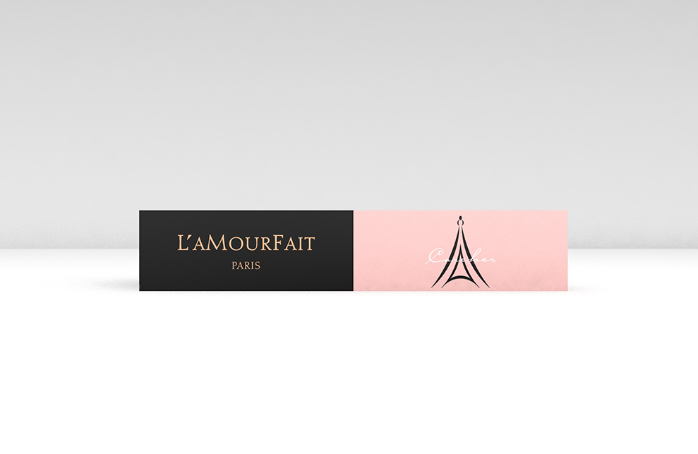 设计来源自广州拉慕非电子商务有限公司,美容产品、化妆品、服装等,主流产品,因而有巴黎铁塔为logo和英文“PARIS”的辅助元素,及法语词L’AMOURF AIT,赋予产品浪漫、富有艺术感的气息。