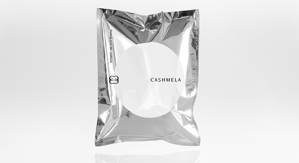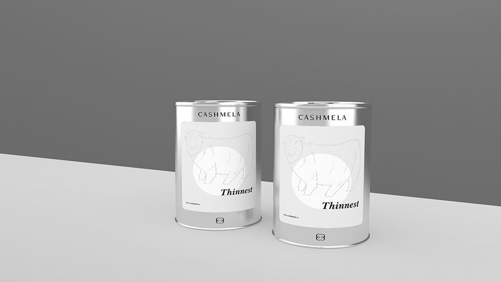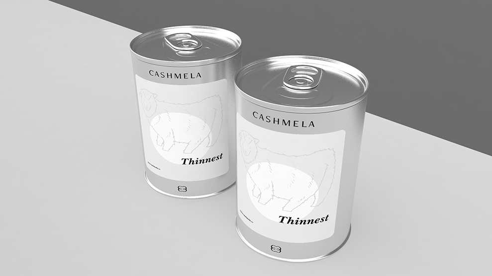 为充分体现开希米娜轻透薄的特点,将衣物蜷缩在一个小的铝罐里,既独特又颇具实用性。
