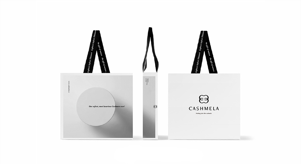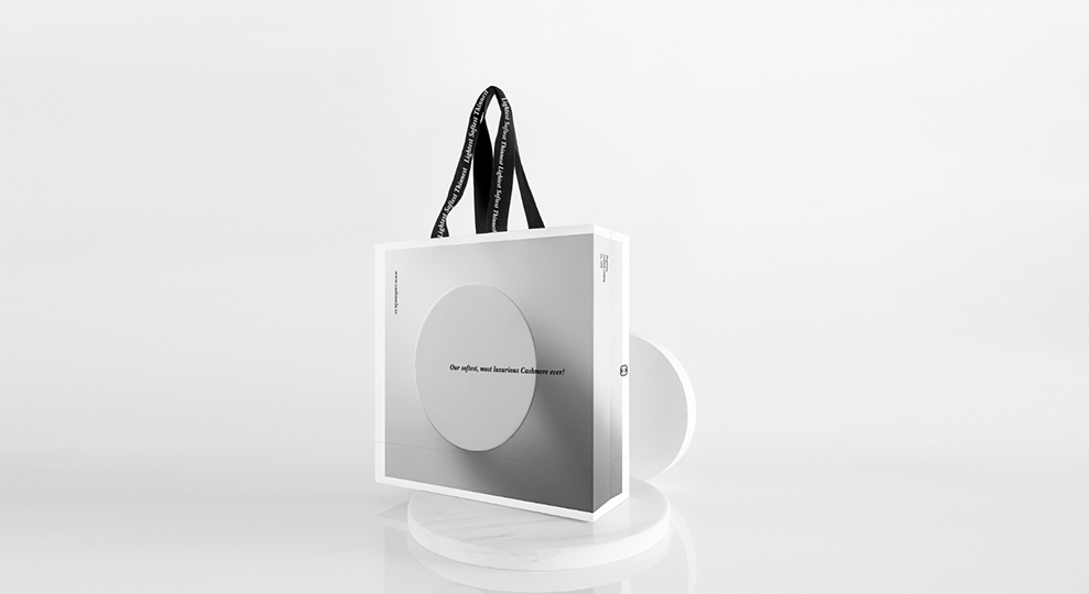 总共为三款不同尺寸的手提袋,可装不同型号大小的衣物,应用较宽的织带搭配最轻最薄最透的英文设计,袋身以圆形图案居中搭配文字排版,给人以更多的想象力与空洞的感觉。