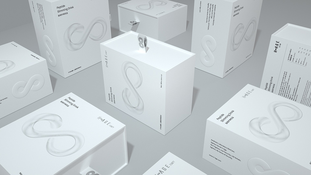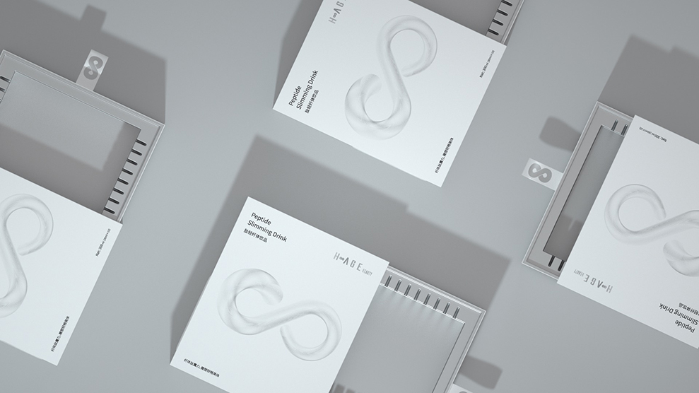 内包装正面视觉使用品牌logo里的无限、无穷的符号设计,银白的底色搭配科技气息的无限大符号,视觉上带来科技与质感的冲击,感受科技产物的震撼。