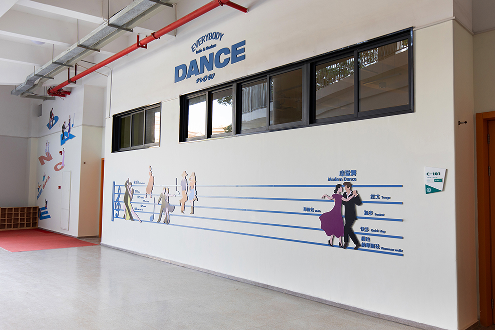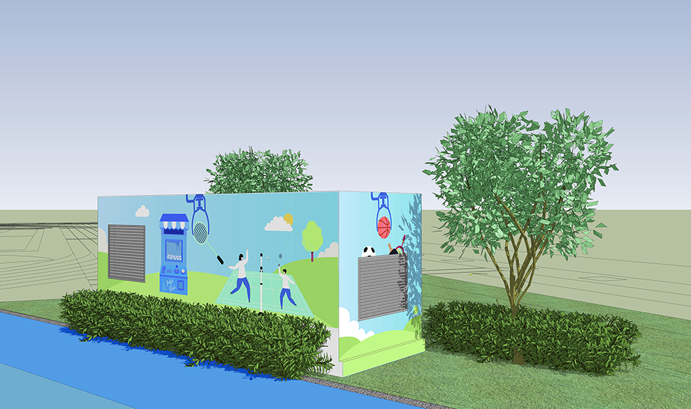 运动主题长廊是通过各种运动的场景搭建氛围感,让同学们随时随地都能进行运动的创新理念结合,主要场地以「校园操场电房、荣誉墙、游泳馆、舞蹈室和小剧场外墙」进行运动场景主体设计。让同学们享受运动的乐趣与便捷,既能「随时随地拿到运动器材」又可以「随时随地进行运动知识科普」。